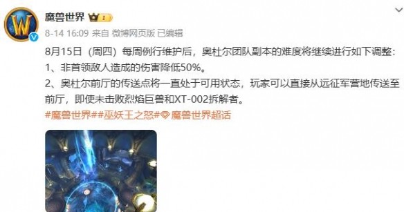 《魔獸世界》奧杜爾團(tuán)隊(duì)副本難度調(diào)整