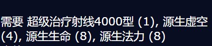 2、接著玩家需要收集1個超級治療射線4000型,4個源生虛空,4個源生生命,8個源生法力,隨后就可以制作這個裝備了。
