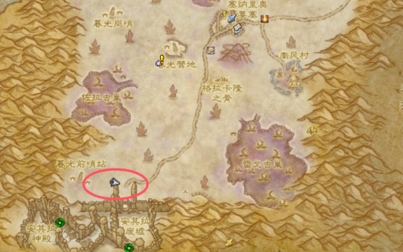2、目前魔獸世界已經(jīng)正式進(jìn)入了夏天,玩家可以前往切換到舊時(shí)間線,來到安其拉廢墟的外面。